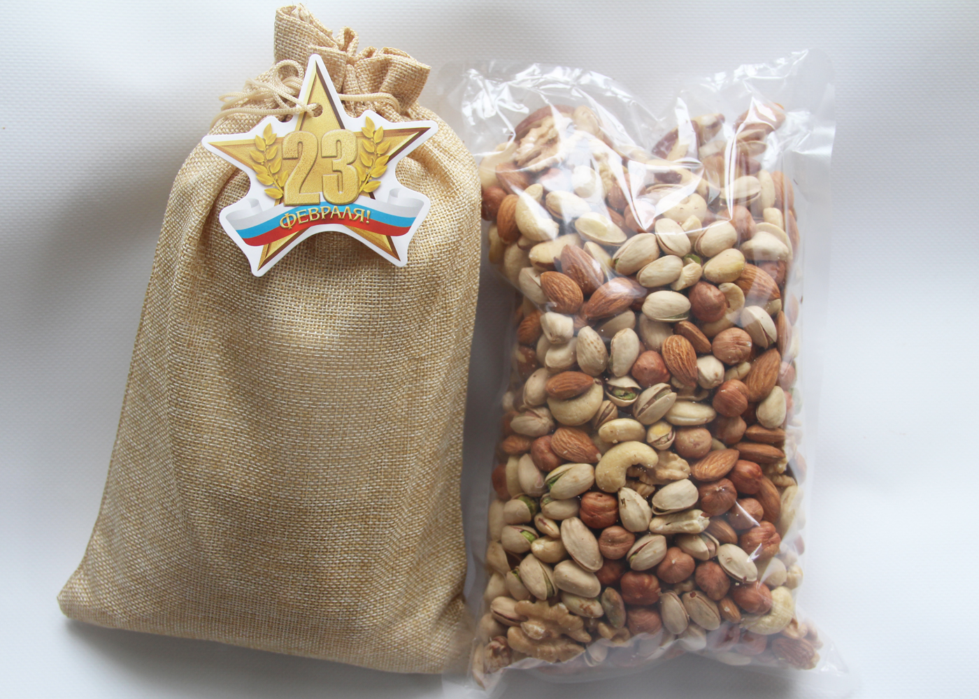 В мешочке (20см*30см) микс орешков: фундук (Азербайджан), миндаль (Калифорния), грецкие орехи (Чили), кешью(Вьетнам), бразильские(Бразилия), фисташки (Калифорния). Соотношение орешков: в равных частях. Все орешки сырые, нежареные.