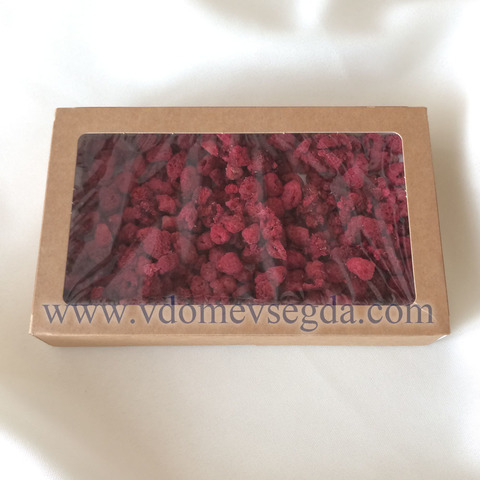 Малина сушится без применения химических веществ (диоксида серы), что позволяет сохранить её яркий цвет и насыщенный вкус.